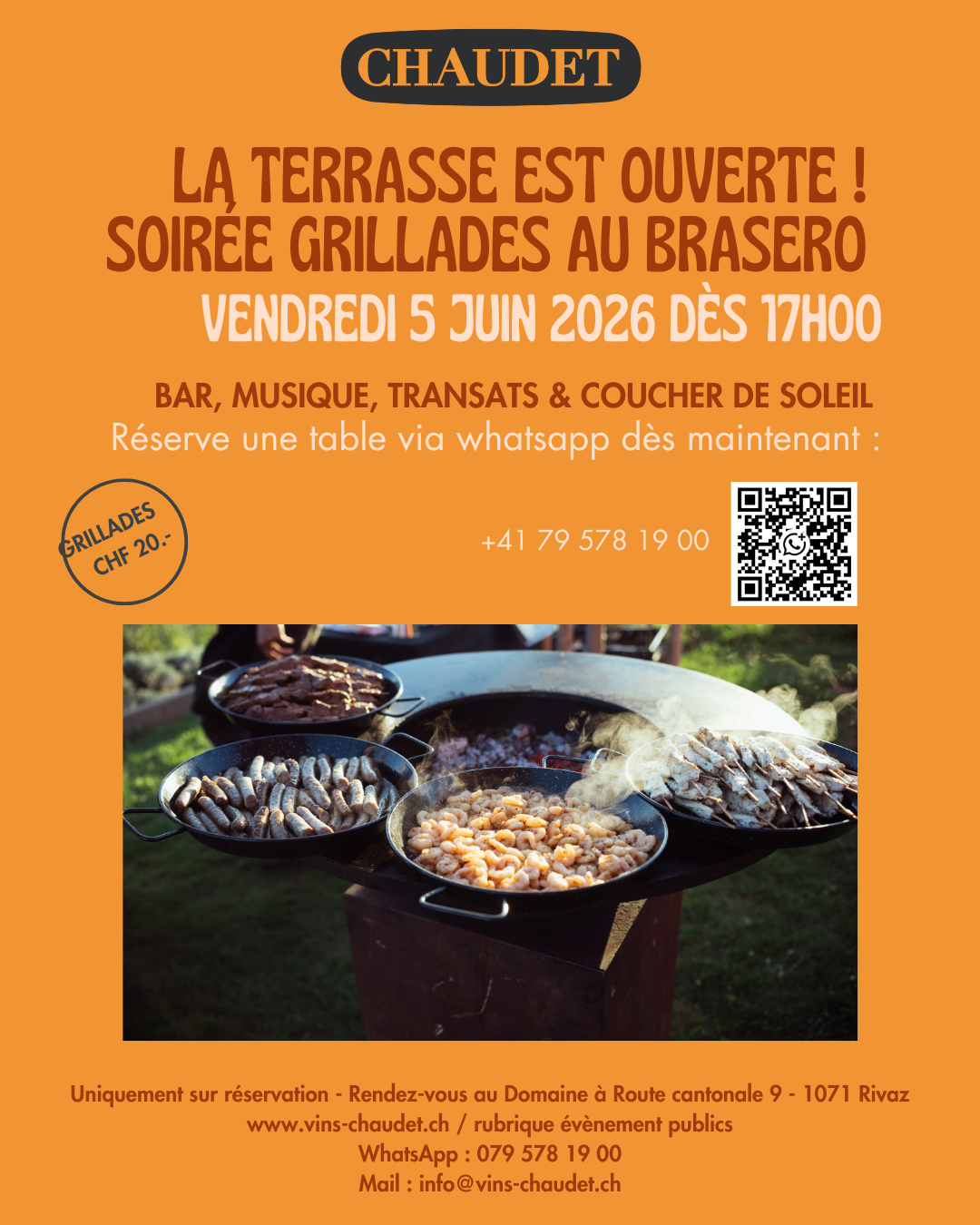 Soirée grillades au brasero vendredi, 5 juin 2026 18:00 22:00 Google Agenda ICS Réservation de table juste ici 👇 En cas d’empêchement, merci de nous prévenir. Nous sommes une petite structure et chaque inscription compte beaucoup pour nous. Si vous ne pouvez finalement pas venir, nous vous serions très reconnaissants de nous envoyer un message.